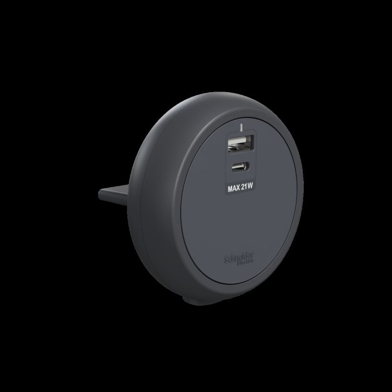 USB socket, Grey, type A+C, 21W, Easy series, 夜幕黑